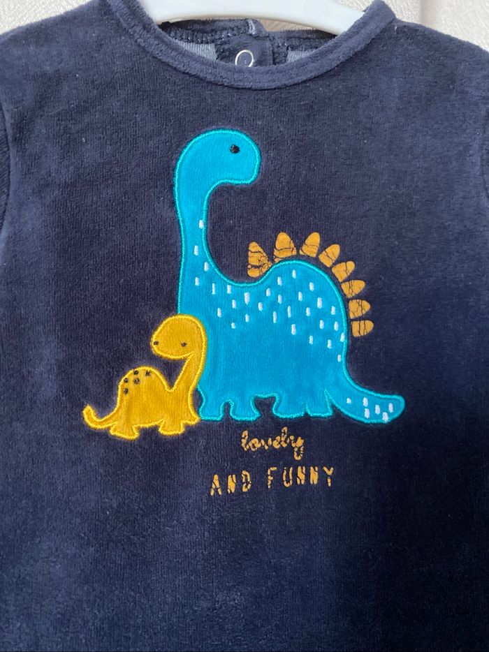 2 pyjamas bleus Bleu ciel éléphants Bleu marine dinosaure Taille 3 mois 56-62 cm kiabi