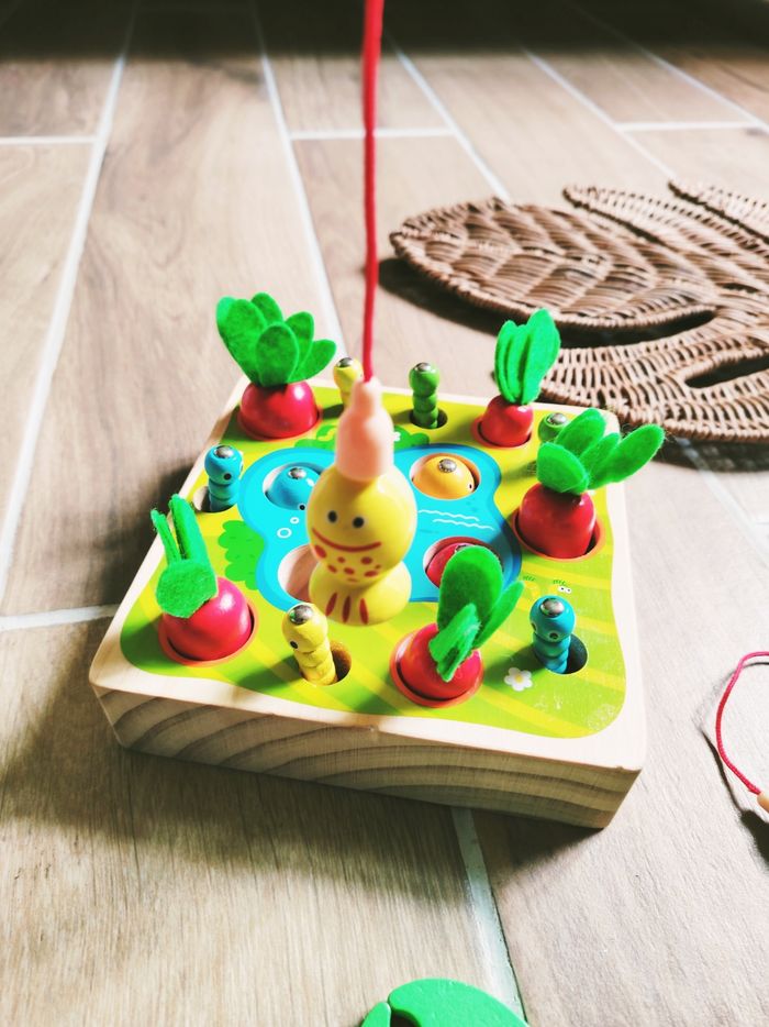 🎣 Pêche à la ligne magnétique 2 en 1 avec carottes à encastrer en bois JB 🎀Convient dès l'âge de 2 ans 🎀Une superbe partie de pêche s'engage c'est parti. Attrapez les petits vers et poissons avec la canne à pêche aimantée. Encastrez les carottes dans leurs emplacements et récoltez les avec la pince 🎀Objectifs ▶️Dextérité, motricité fine ▶️Coordination main/oeil ❇️N'hésitez pas à créer un lot pour économiser sur les frais de port❇️ Premier âge, Jouet bébé, Jouet d'activité, Jouet ludique, Jouet eveil, Mémorisation, Memoire, aptitude, motricité, jeu Adresse, Montessori, jeu bois, Jouet bois, Jouet vintage, Jeu adresse, jeu apprentissage, dextérité, jeu sensorielle, jeu educatif, activités et Jouet pour bébé, trier empiler, encastrer, jeux et jouets