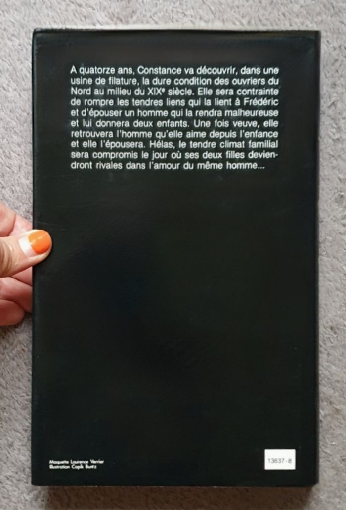 Résumé : C'est dans une courée, cœur battant de la vie sociale du Nord, que Constance, la narratrice, rencontre Frédéric et tisse avec lui de tendres liens que le destin va dénouer. À quatorze ans, la jeune fille découvre la filature et les servitudes de l'usine. Pour y échapper, elle épouse Bart, ouvrier. Est-ce enfin la promesse du bonheur ? Puis sa fille Charlotte continue le récit. Avec elle, le lecteur pénètre dans ce Nord du XIXe siècle, sans joie et gris. Une grisaille éclairée par l'amour et réchauffée par l'espoir. Misère et espérance s'entremêlent dans cette inoubliable fresque.. Année de parution : Janvier 1991. Auteur : M.P Armand. Éditions : France Loisirs. =) 372 pages. Très bon état général! Juste de très légères traces d'usage sur couverture (minimes). L'intérieur du livre est nickel!