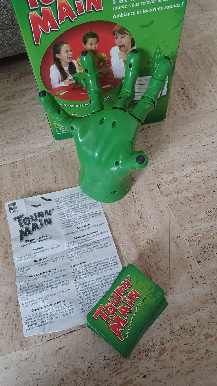 Jeu tourne main la pile est à mus dans la main 👋 2 joueurs ou plus Gare à toi si tu es montré du doigt A partir de 7 ans Jeu action ou vérité boîte un peu abîmer au dessus