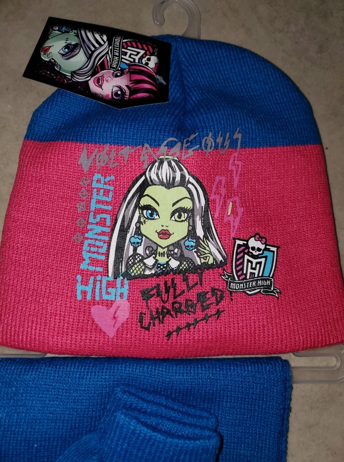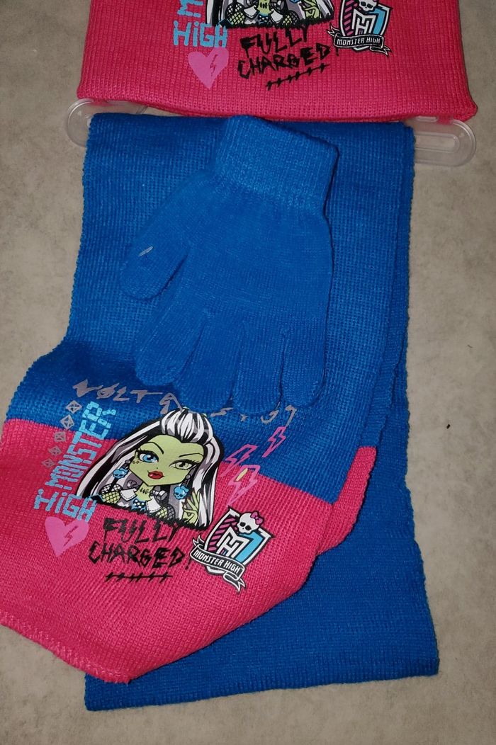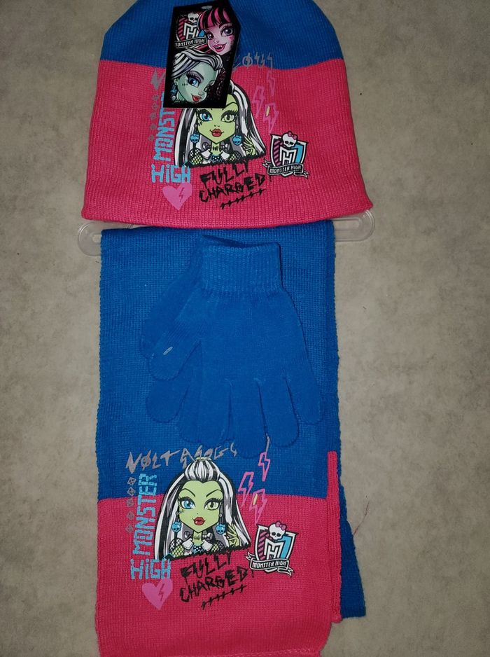 ensemble neuf fille Monster High bonnet 54 cm écharpe gants - photo numéro 1