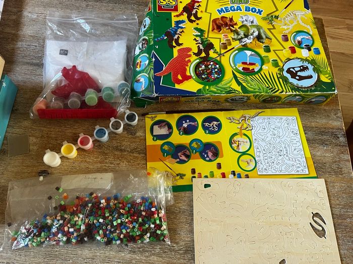 Dino mega box Ouvert mais peu utilisé. Une plaquette de peinture a été utilisé mais l’autre non. Le plâtre n’a pas été utilisé