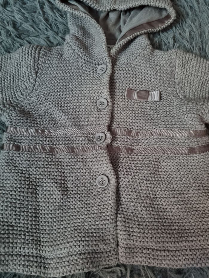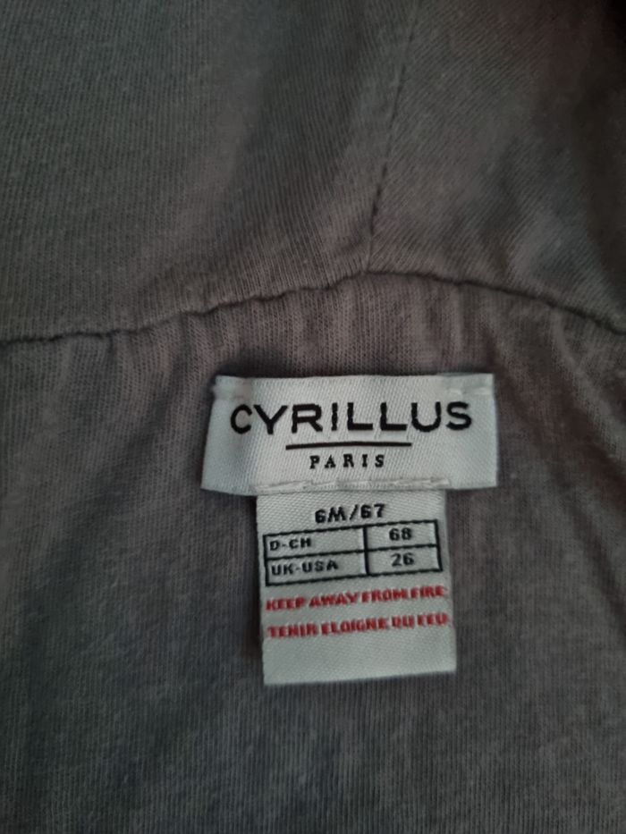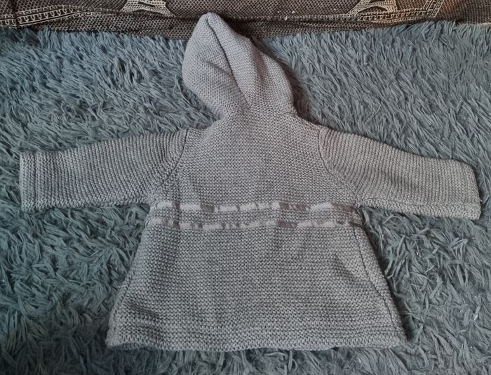 Gilet gris à boutons avec capuche, taille 6mois marque Cyrillus.