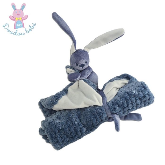 Doudou LAPIN Lapidou NATTOU velours bleu et blanc