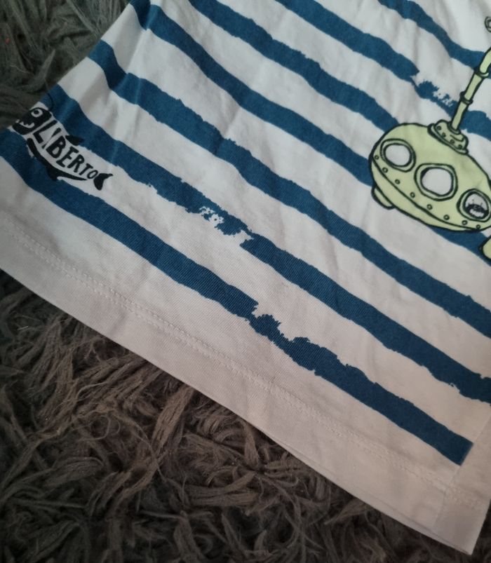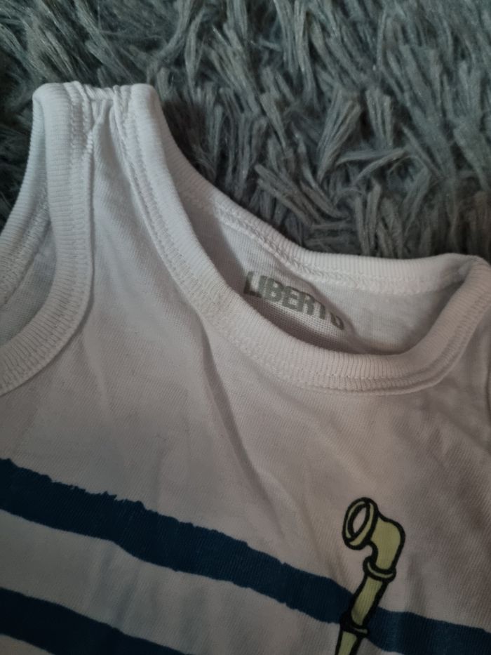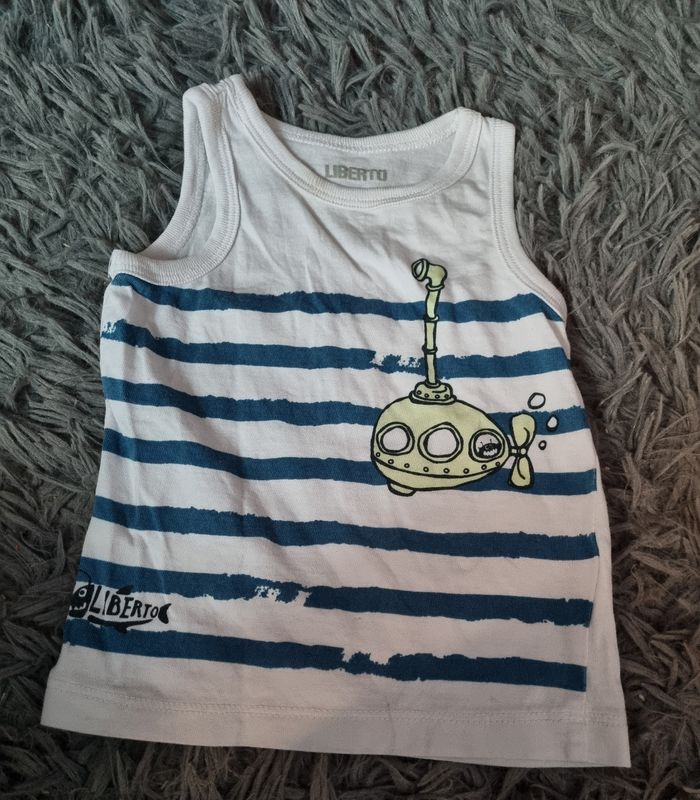 Débardeur blanc à rayures ,taille 6mois marque Liberto, légère taches voir photos.