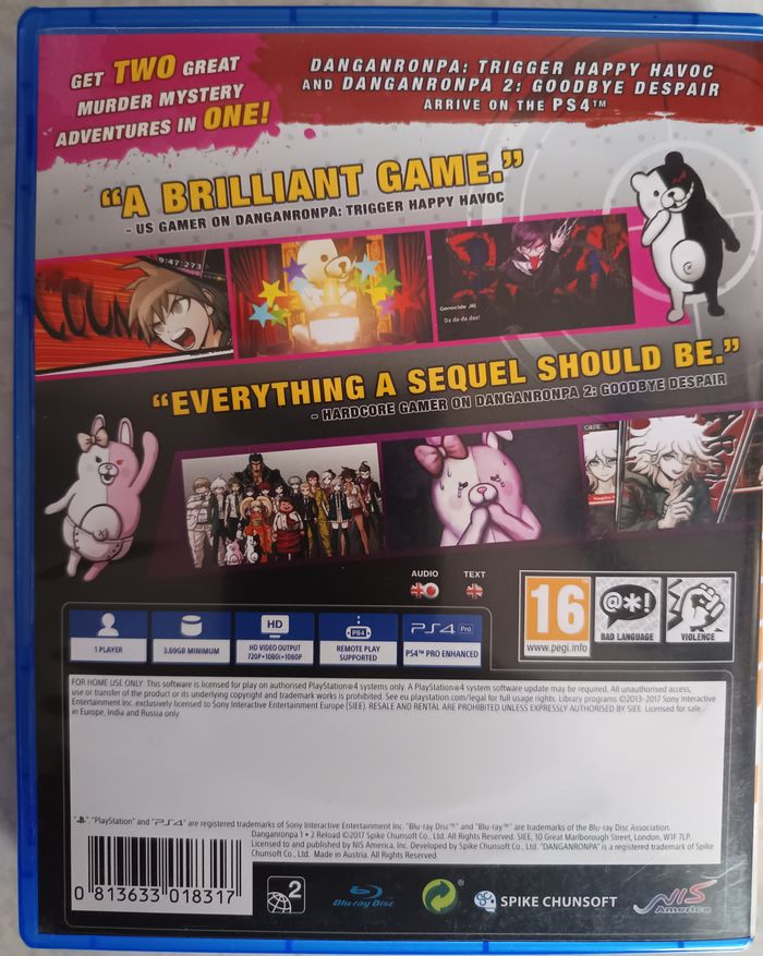 Danganronpa 1-2 Reload CD seule PS4 PAL FR Sony PlayStation 4