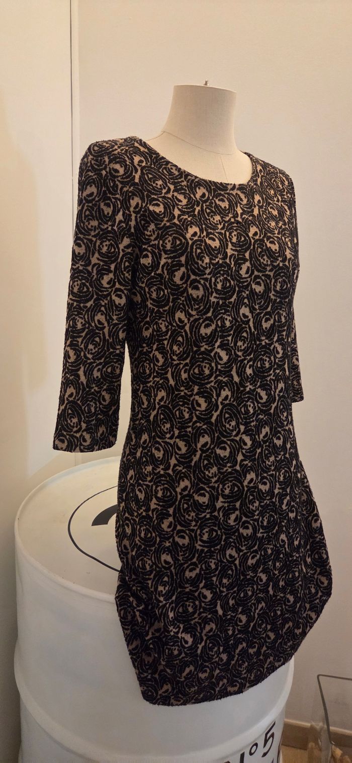 Robe La Fée Maraboutée – imprimé original noir & beige – manches 3/4 – T1 (38 FR) – comme neuve - photo numéro 2
