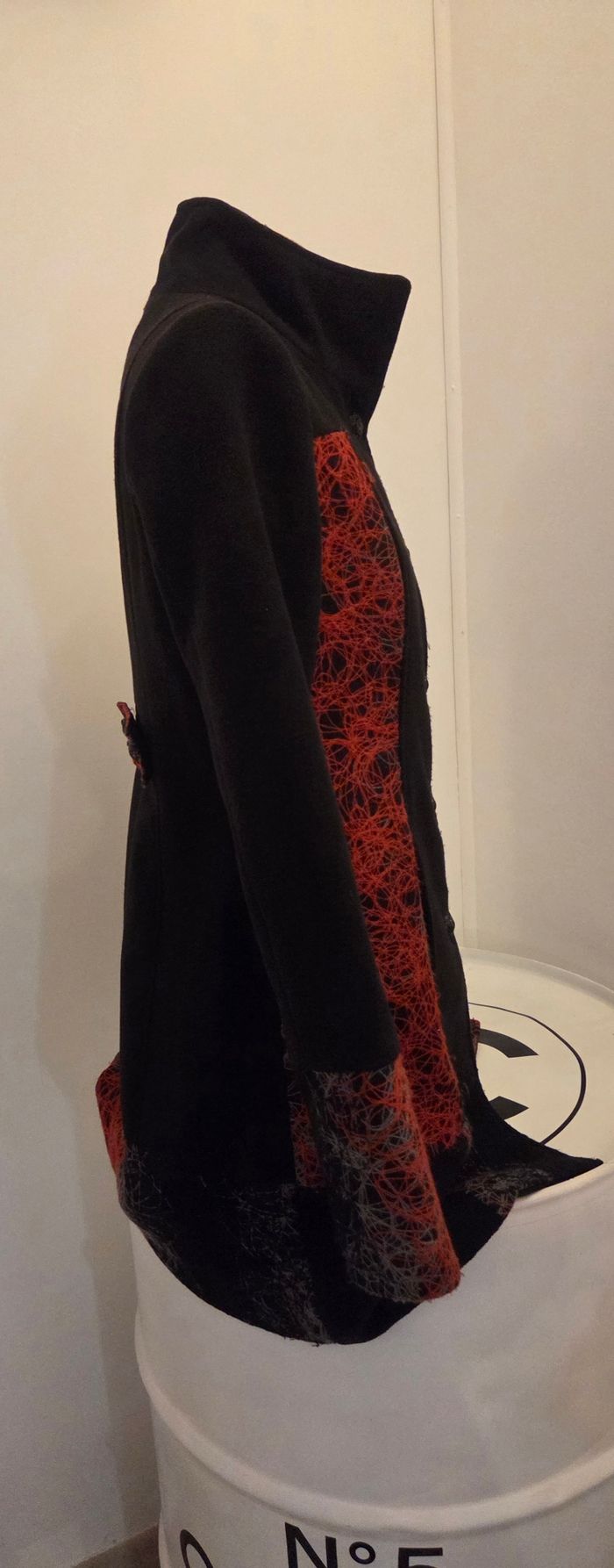 Manteau original Clara Vitti – coupe cintrée élégante – détails rouges artistiques – taille 38 - photo numéro 10