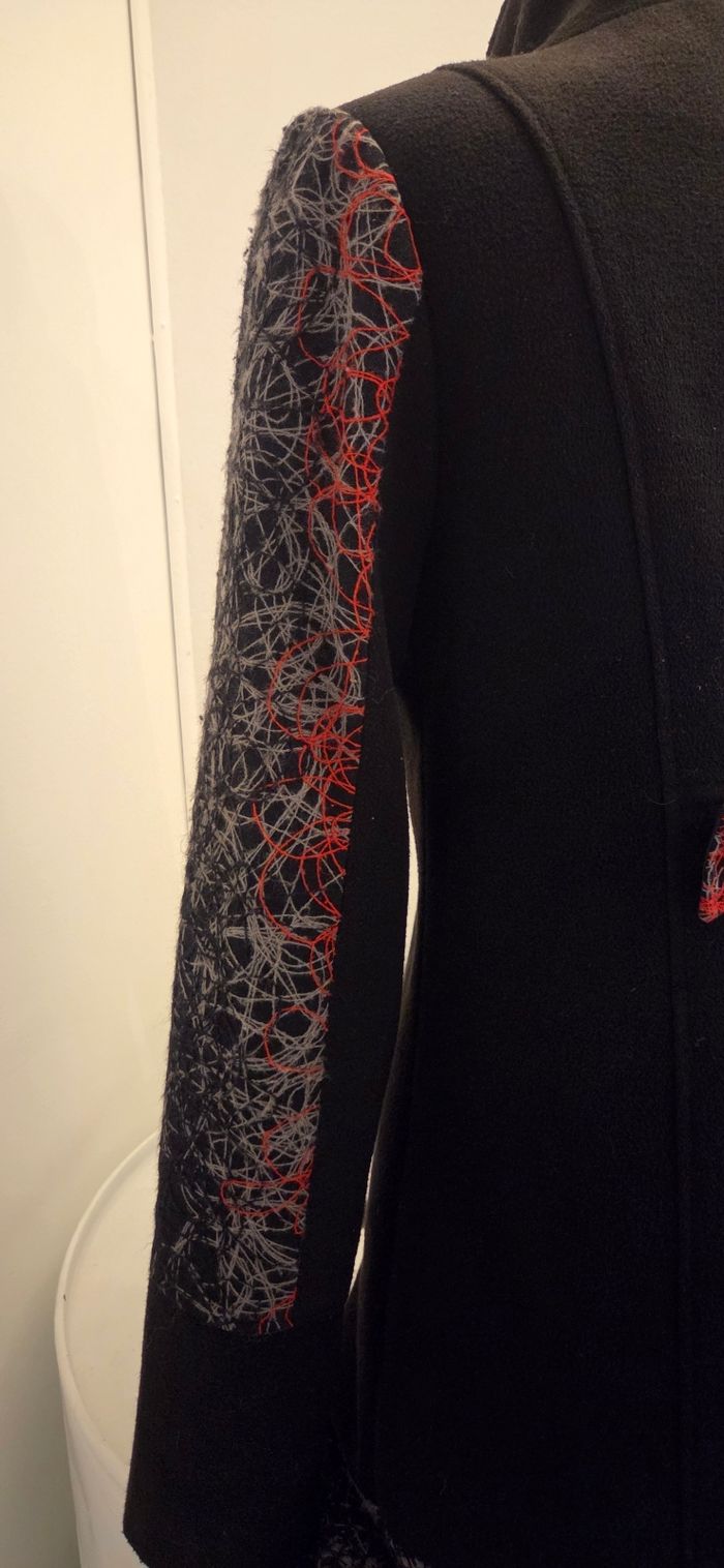 Manteau original Clara Vitti – coupe cintrée élégante – détails rouges artistiques – taille 38 - photo numéro 8