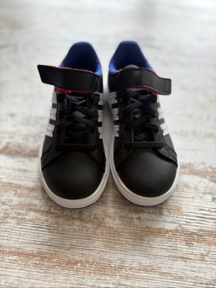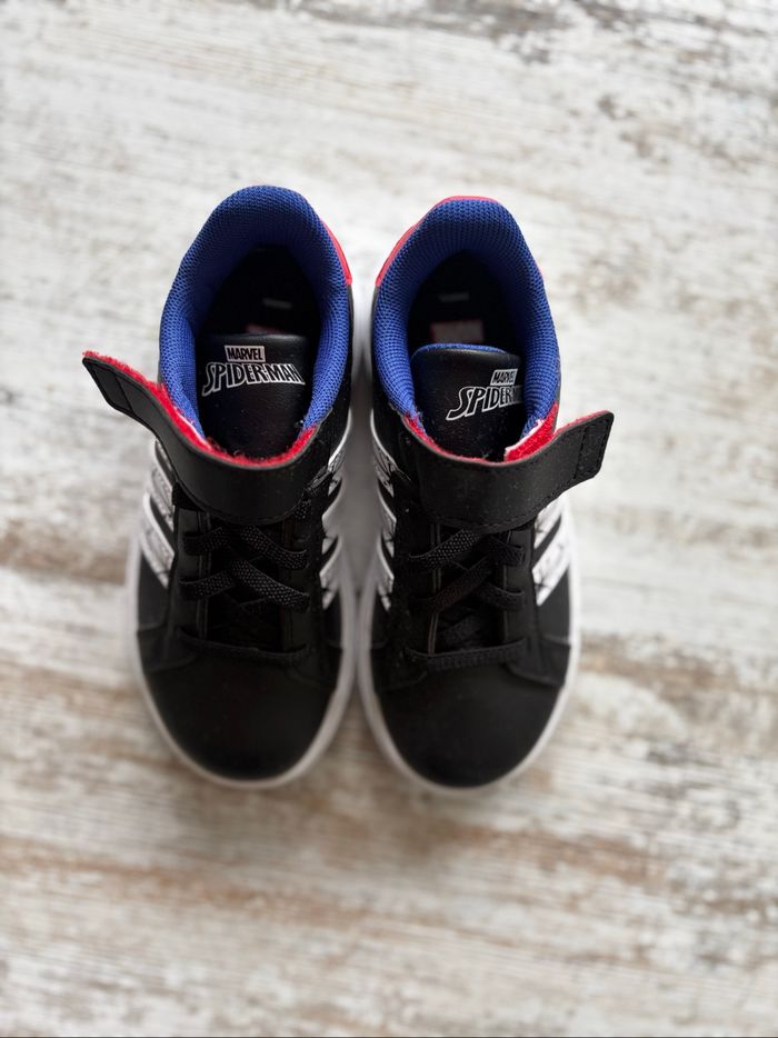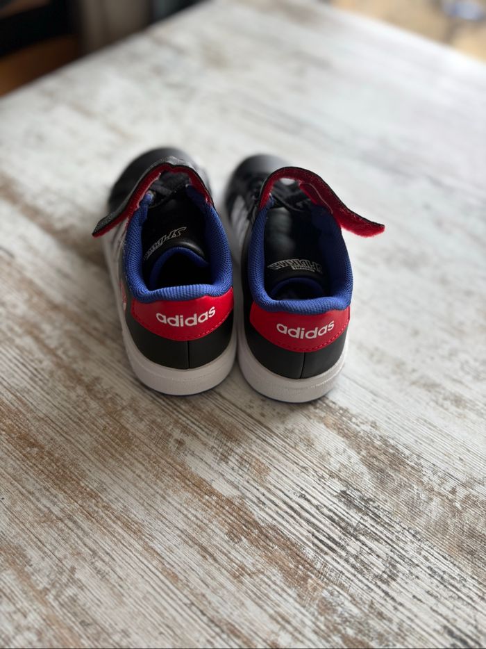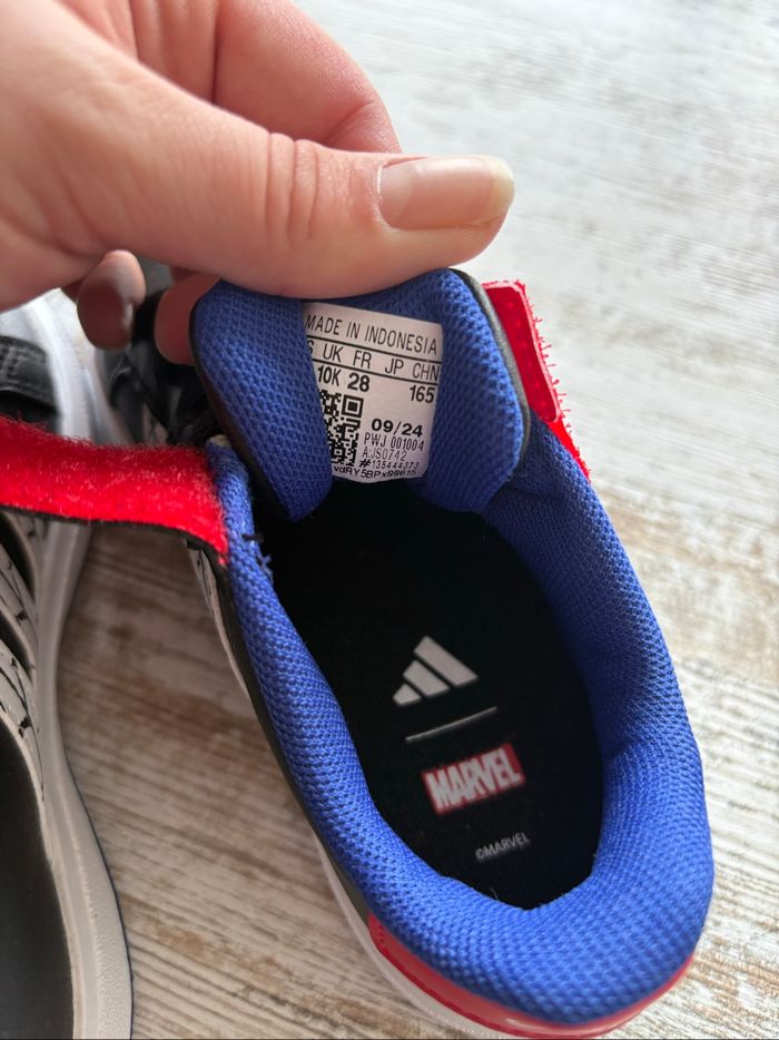 Paire de basket Marvel Spiderman adidas neuf, jamais mise juste essayer. Vendu sans la boîte d’origine et sans étiquette. Ne convient pas à un enfant avec les pieds large ( cause pour laquelle je les vend ) Taille 28