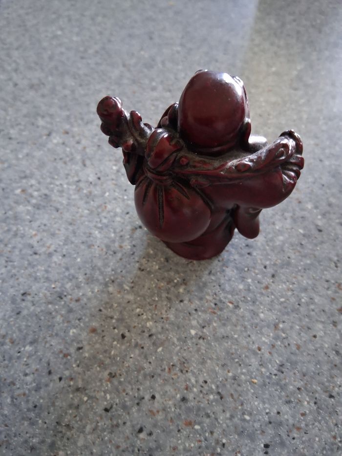 Bouddha " rieurs " Musicien En résine rouge Hauteur : 10cm Largeur : 8cm Excellent état