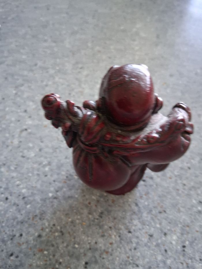 Bouddha " rieurs " Cornebuse En résine rouge Hauteur : 10cm Largeur : 8cm Excellent état EN POSSÈDE UN AUTRE PAREIL