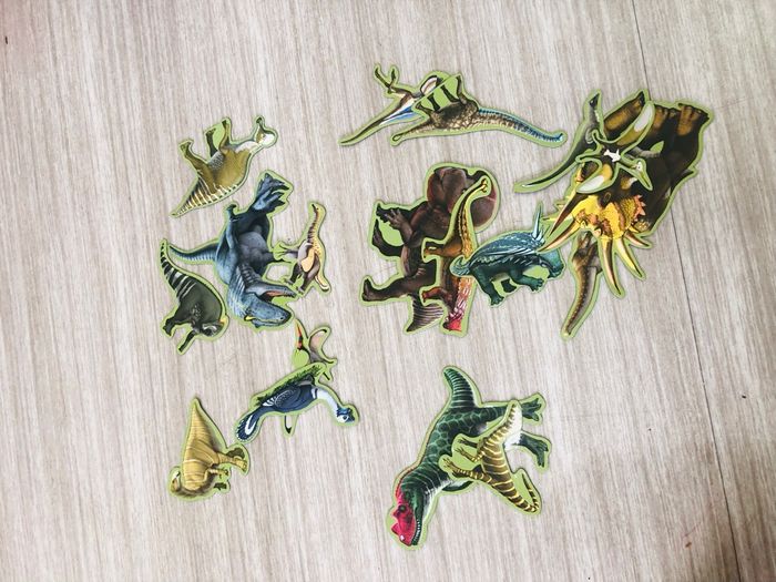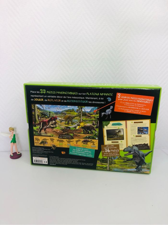En très bon état, léger défaut au dos du plateau et il manque un petit dinosaure magnétique.