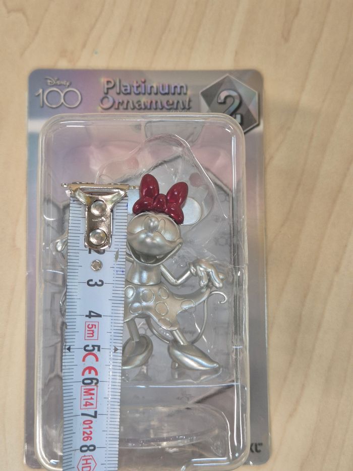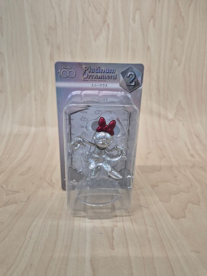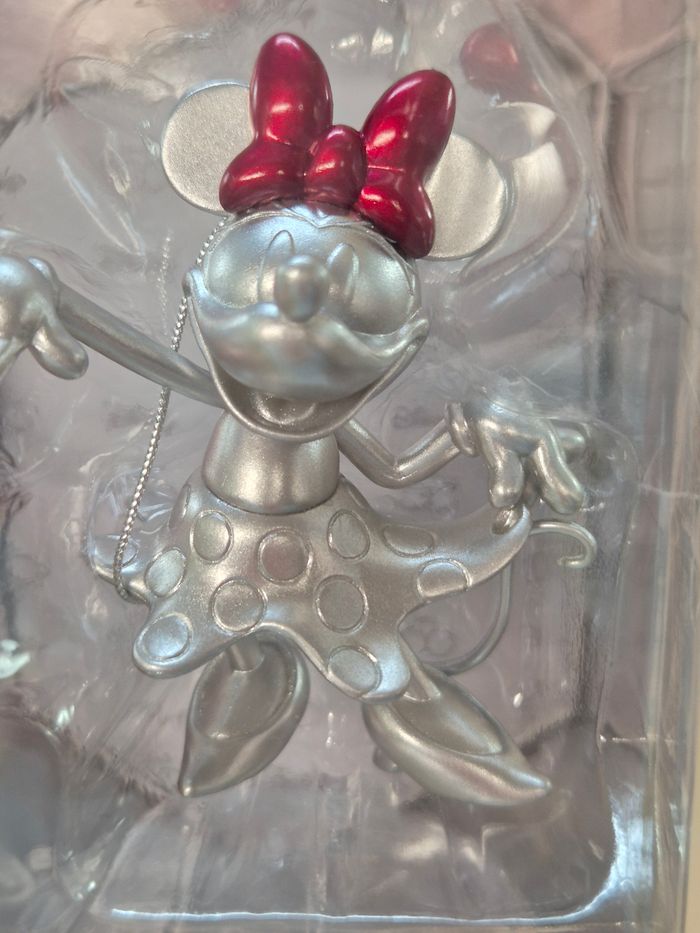 Figurine/ ornement de Noël Disney Happykuji 2023 (spécial 100 ans Disney): Minnie. Plastique, environ 6-7cm, en excellent état sous blister en état correct. Chaque figurine vient avec un lien pour accrocher dans le sapin et un socle pour exposition.