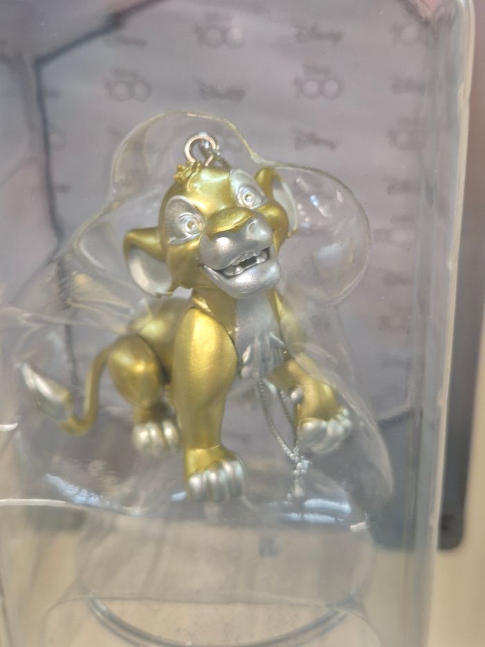 Figurine/ ornement de Noël Disney Happykuji 2023 (spécial 100 ans Disney): Simba (Le Roi Lion). Plastique, environ 6-7cm, en excellent état sous blister en état correct. Chaque figurine vient avec un lien pour accrocher dans le sapin et un socle pour exposition.