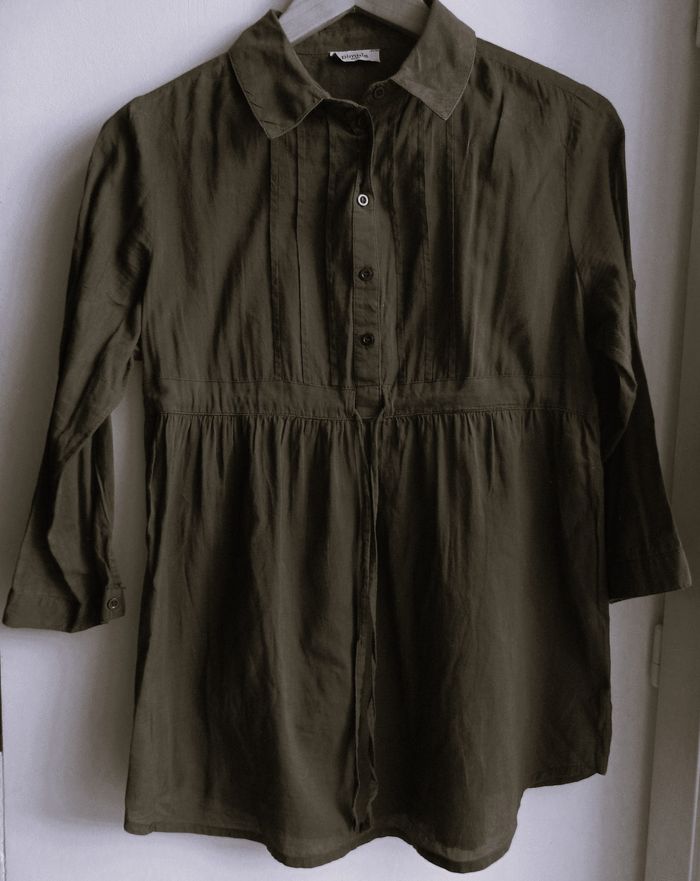Blouse T 38 Marque" Pimkie" En coton Marron uni Manches retroussables Se resserre à la taille Très bon état Envoie sous 48 h