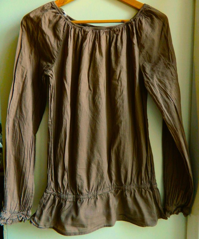 Blouse T 38 Marque" Pimkie" En coton Marron uni Manches retroussables Se resserre à la taille Très bon état Envoie sous 48 h