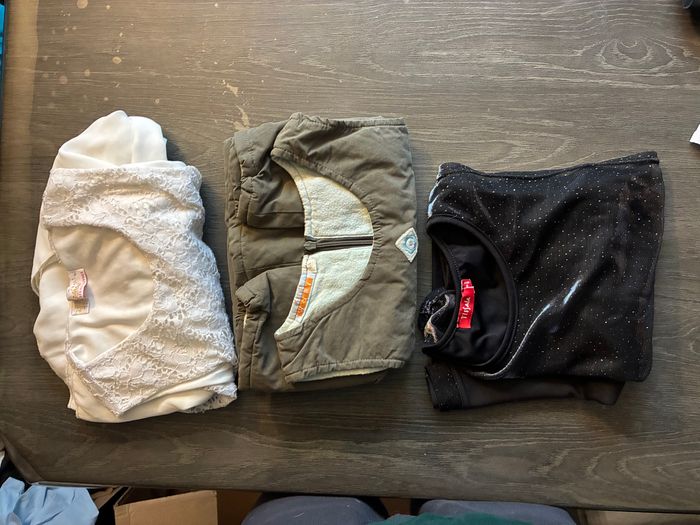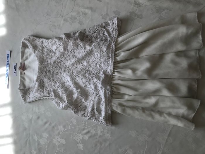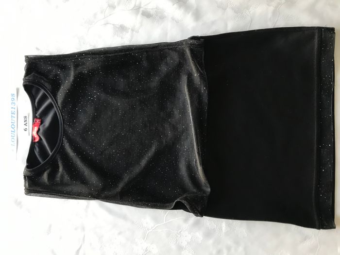 Lot de robes, comprenant : • Robe à manches courtes noire à paillettes (Tissaïa) • Robe écrue dentelle (P’tit Môme), souvent portée • Robe à manches courtes kaki (Kid Wapi) Le lot peut être séparé 😉