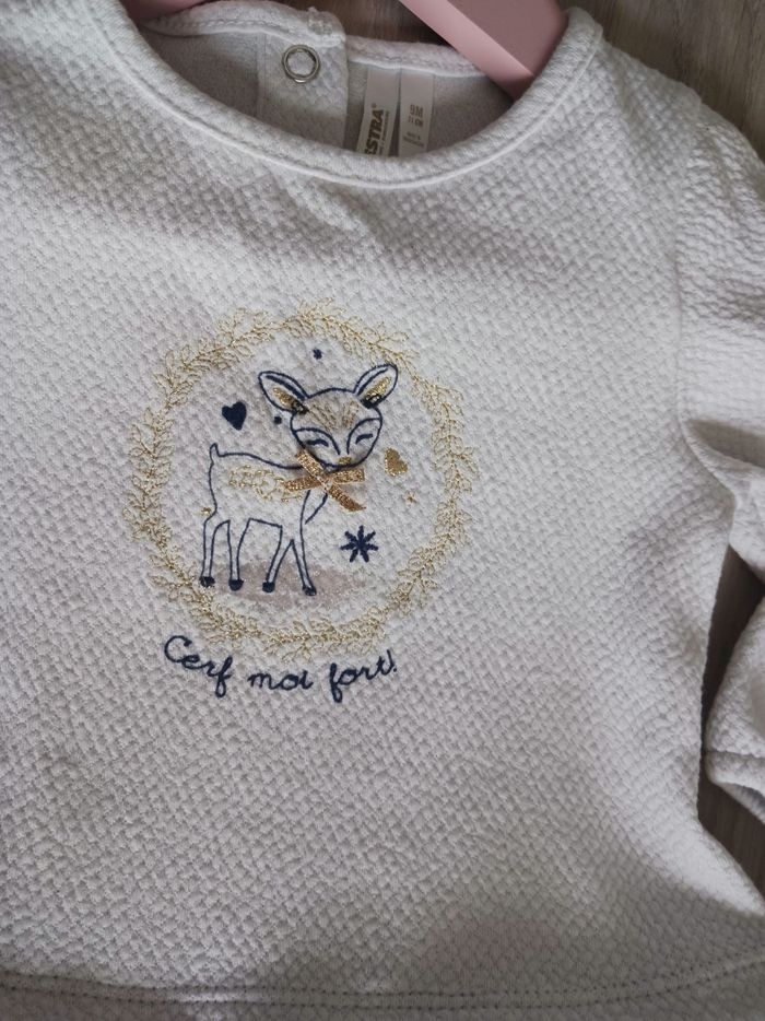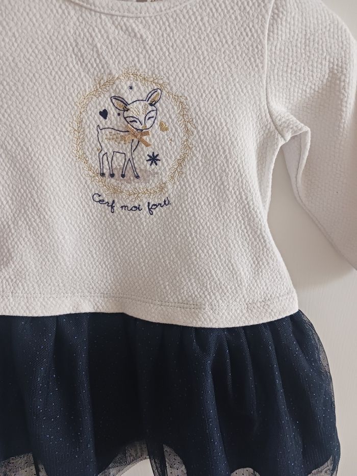 Adorable robe tutu Orchestra 9 mois 71 cm, couleur blanc et bleu marine, motif cerf avec inscription "cerf moi fort !"