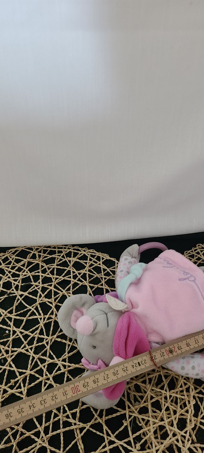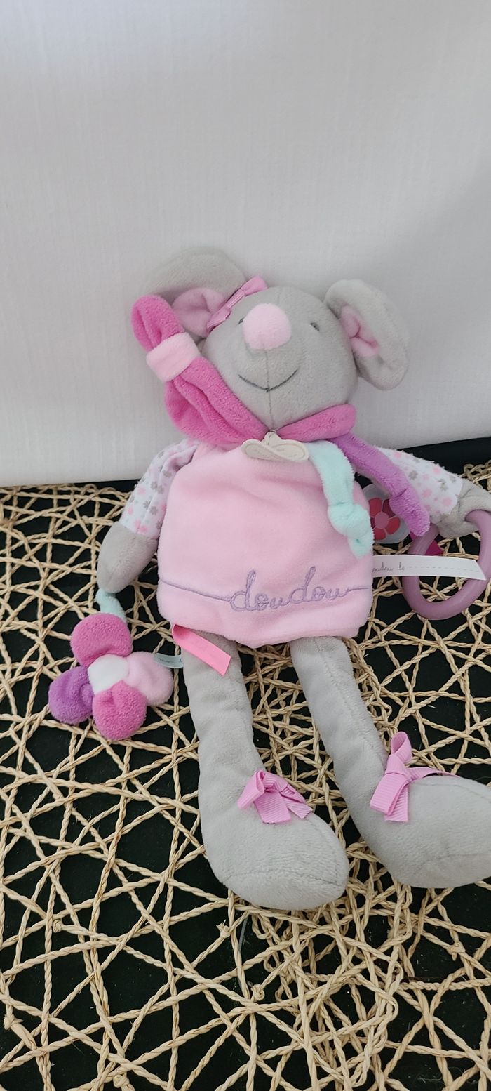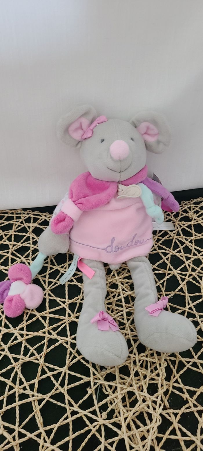 Doudou et compagnie souris grise rose violet hochet fleur Pearly 37