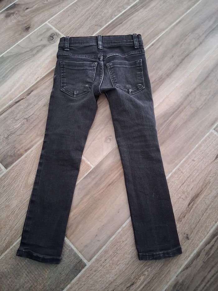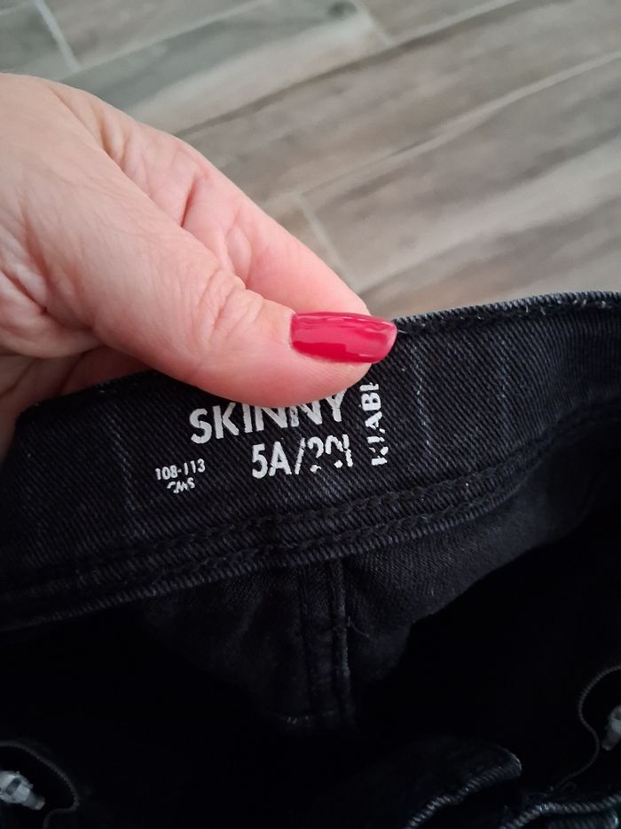 Jeans noir skinny taille 5 ans en bon état, porté décolorer par endroit, avec élastique de réglage à la taille.