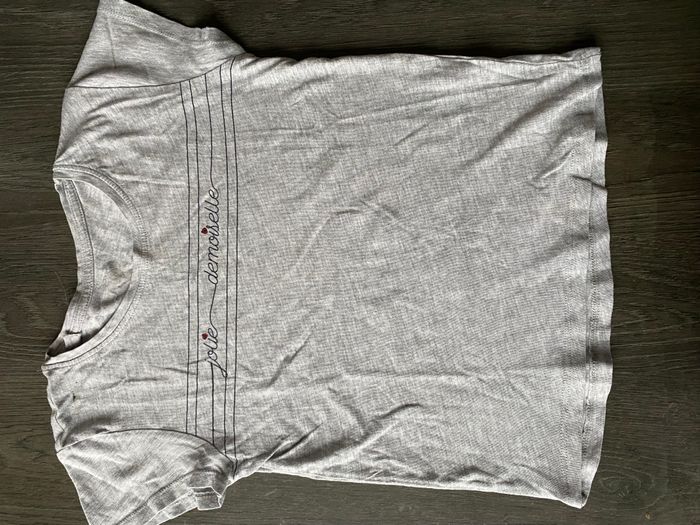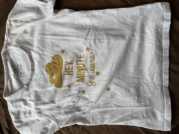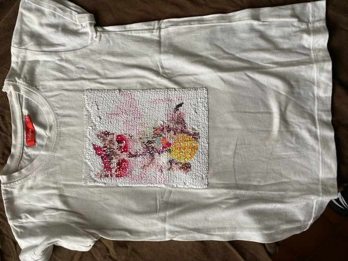 Lot de T-Shirts, comprenant : - Top sans manches kaki à nouer à la taille (H&M), taille 8/9 ans, Peu porté - T-Shirt gris à manches courtes gris (Charlie & Prune), défaut d’origine à l’épaule droite (tissus teinté) - T-Shirt blanc à manches courtes avec Sequins réversibles (Tissaïa), tâché (voir photos) - T-Shirt blanc à manches courtes (Charlie & Prune), en bon état : souvent porté - T-Shirt rose à manches courtes gris (H&M), taille 6/8 Ans - Débardeur rose à manches courtes (Orchestra), peu porté Le lot peut être séparé 😉
