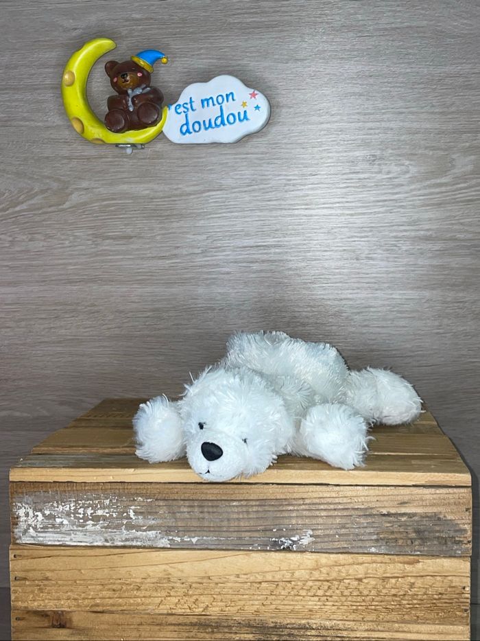 🌺 Bonjour, vendeuse professionnelle 🌺 Je vous propose le Doudou suivant : Marque : Créations Dani Genre : ours Format : peluche Mesures : 20cm Coloris : blanc Motifs/Broderies ou plus : micro billes dans le corps État d’occasion : très bon Stock : 1 RÉFÉRENCE : CDN44 ➡️ Pour plus de modèles de cette marque, cliquez ici : #creationsdani_cestmondoudou ⭐️ La décoration (boîte...) n'est pas vendu avec le doudou ⭐️