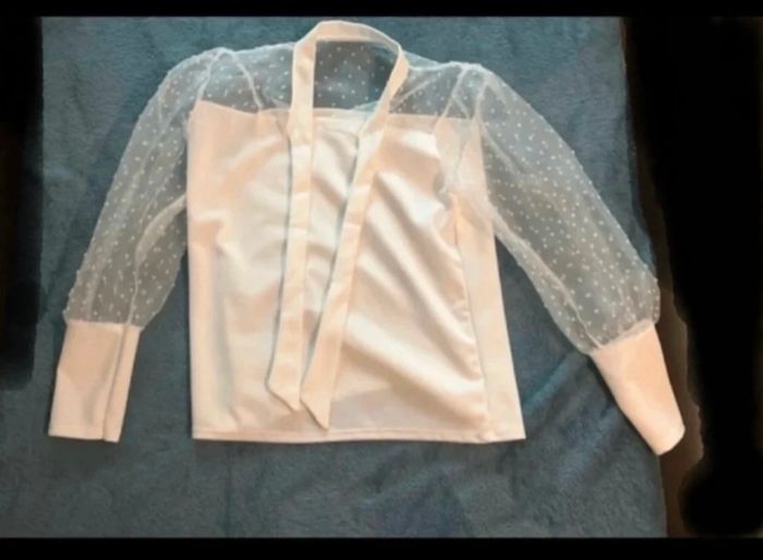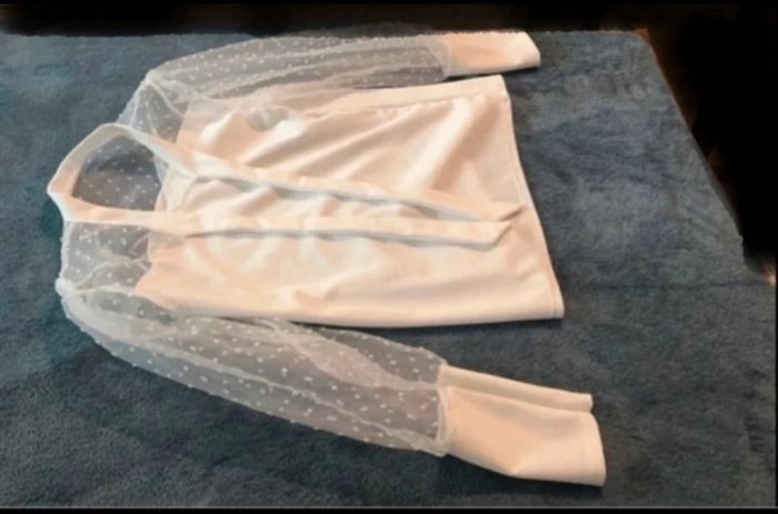 CHEMISE FILLE MANCHE TRANSPARENTE 14 ANS (164 CM) SANS MARQUE BLANC TRÈS BON ÉTAT 1.89 EUROS