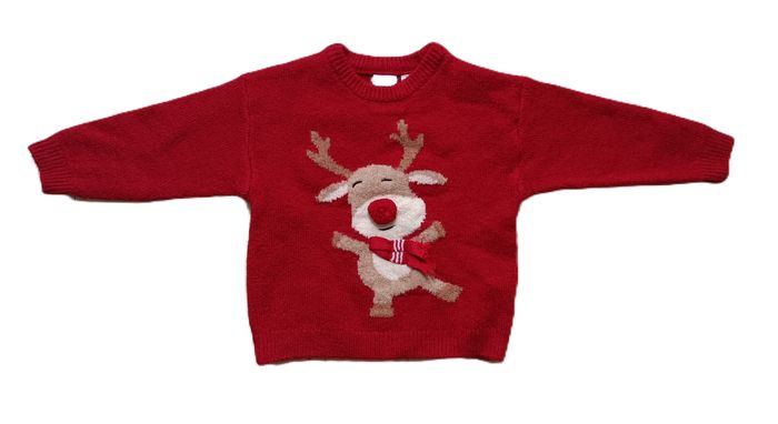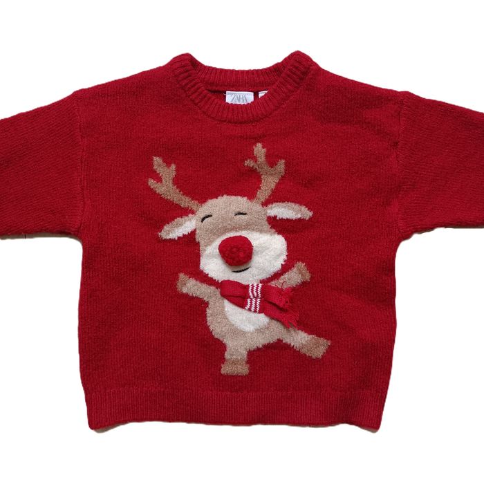 Pull rouge renne du Père Noël. Zara. Taille 18 - 24 mois. 92 cm - photo numéro 1