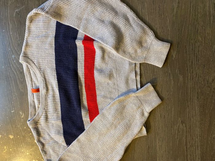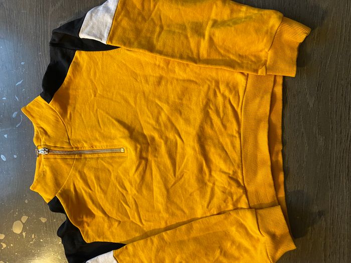 Lot de Pulls, comprenant : - Pull rose (La Halle), en bon état - Sweat à col zippé jaune (La Halle) - Sweat noir (La Halle) TBE - Pull gris à rayures bleue et rouge (FPC) - Pull gris « New York » (La Halle) - Pull noir (La Halle) Le lot peut être séparé 😉