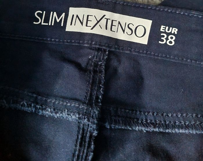 Jean slim marine,taille 38 marque In extenso, longueur 92cm, largeur de la taille 40cm, largeur cuisse 24cm, largeur cheville 12cm,peu porté.