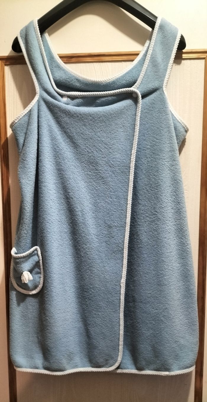 sortie de bain , de plage etc en polaire de couleur bleu ciel. - Type de produit : Sortie de bain - Taille : L. 40/42 - Couleur : Bleu ciel - Matière : Polaire - État : très bon état - Option : 1 poche sur le côté et ferme par 2 pressions