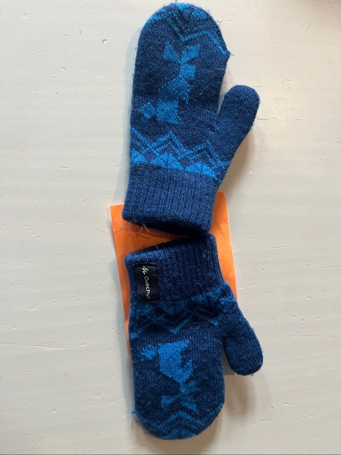 Moufle bleu quechua Étiquette couper mais un peu plus grande que les gris