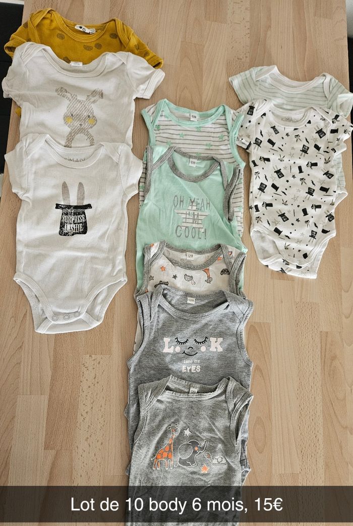 Vend lot de 10 body manche courte taille 6 mois