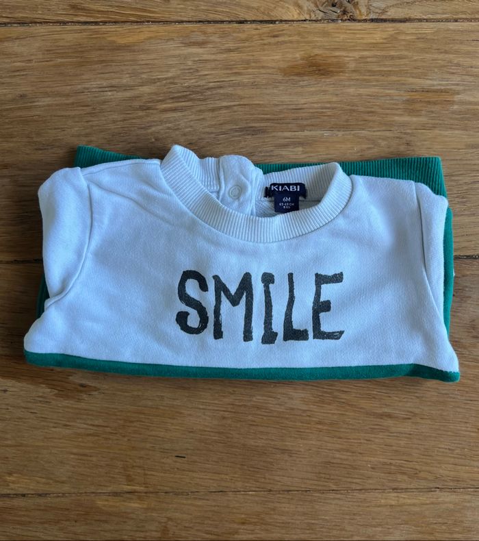 ▪️Sweat ▪️Coton ▪️Blanc / Vert ▪️Kiabi ▪️6 mois ▪️Très bon état Envoi des colis le lundi et le jeudi, remise sur les lots dès 2 articles achetés Retrouvez les autres articles: #EwenB6mois #6mois #pull #hiver #6moisgarcon #kiabi #kiabi6mois #sixmois