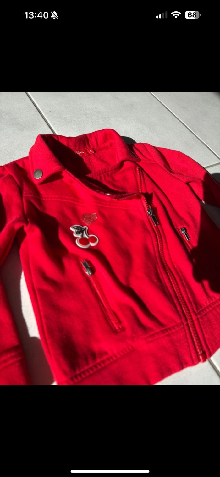 Veste rouge Bon état quelques bouloches Taille 4 ans