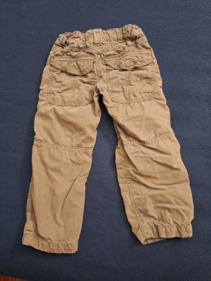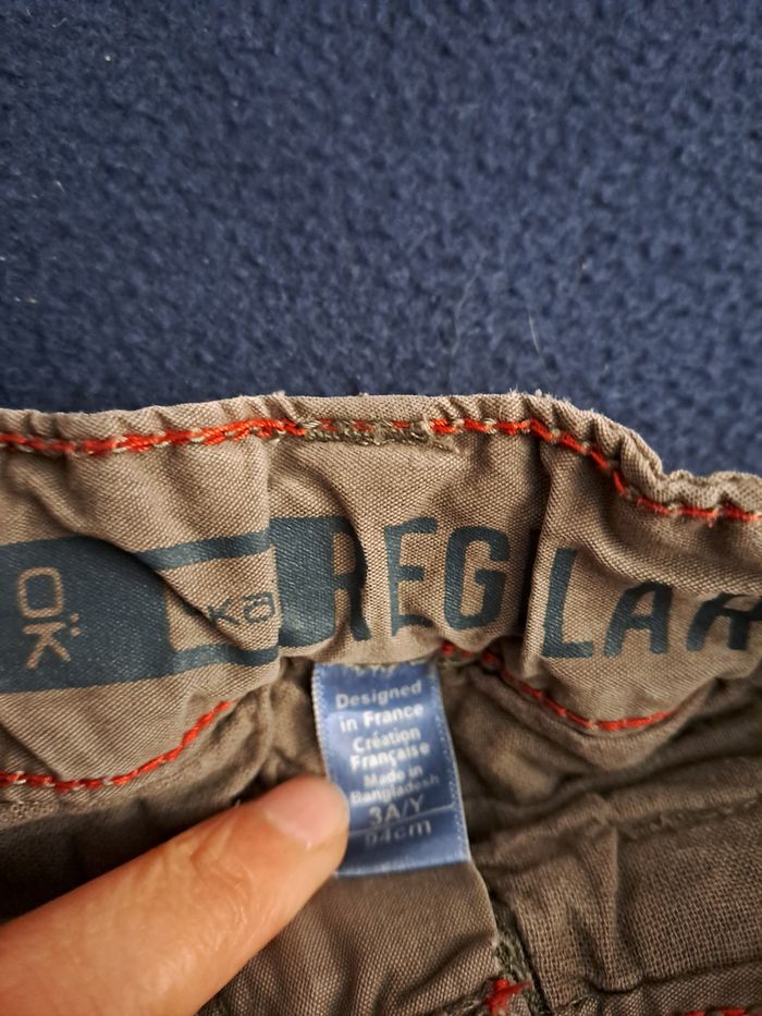 Pantalon en 3 ans. Attention, la couleur est bien kaki, je ne sais pas pourquoi sur la couleur ça fait autrement. Non repassé.