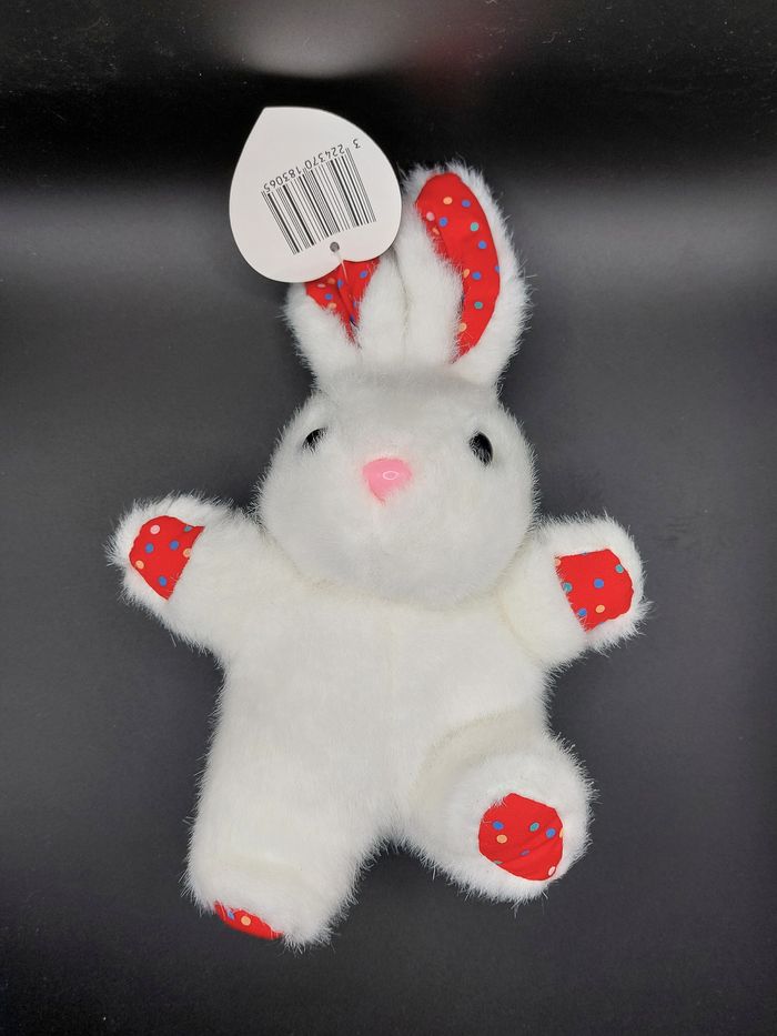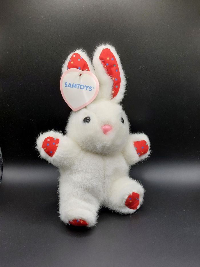 Petite peluche doudou lapin blanc SAMTOYS Samsung France rouge avec des pois - hauteur 20 cm - Style Vintage