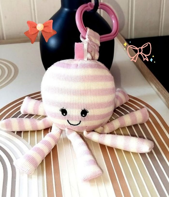 🔵. Neuf jamais utilisé 🟡 Notre Octavia Octopus Jitter, la petite pieuvre Jellycat, divertira votre tout-petit . Octavia Octopus se trémousse et tressaille lorsqu'on tire sur son cordon. Dotée d'un fermoir en plastique résistant, elle s'attache facilement aux poussettes, lits, etc. Fini en peluche Jellycat super douce.