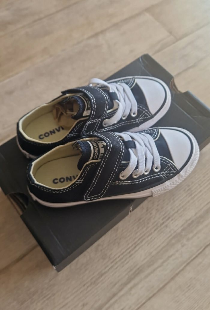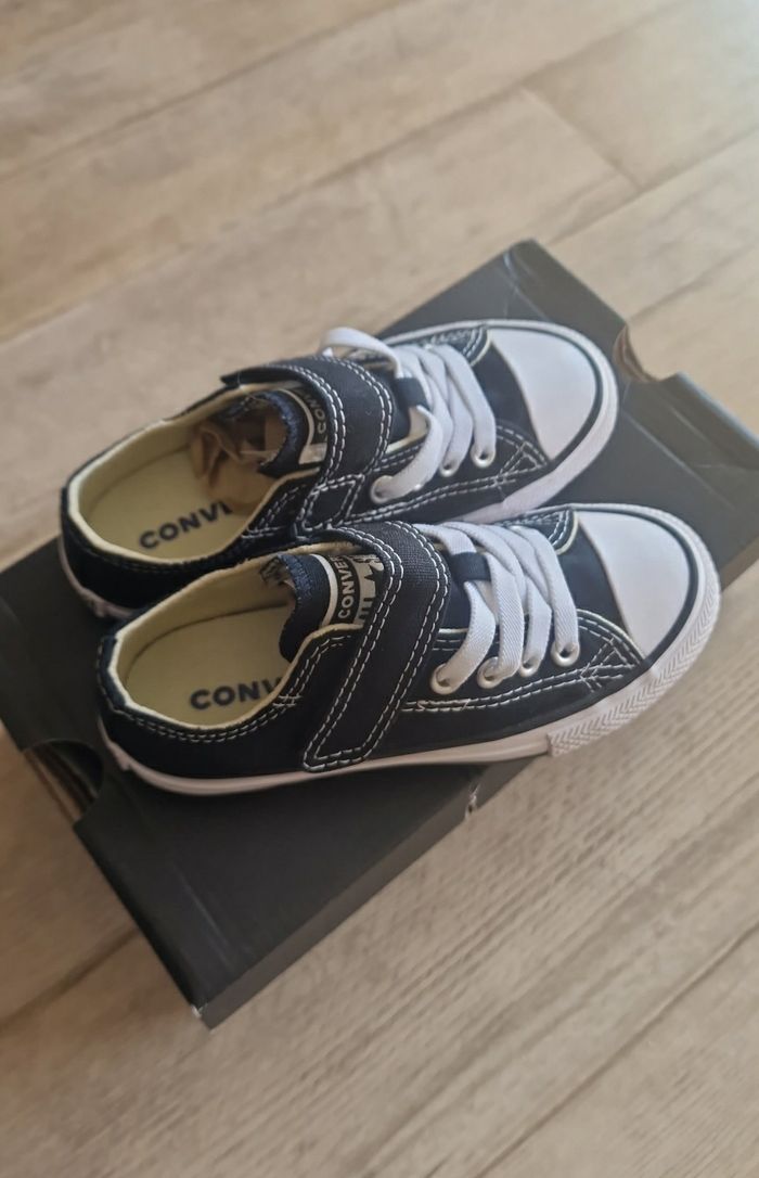 La légendaire sneaker basse a été repensée pour les enfants, avec une semelle de propreté SmartFOAM rembourrée ainsi que des coutures et des doublures assouplies. Une bande de type scratch et des lacets élastiques permettent un enfilage et un retrait faciles, pour un maintien sûr de l'empeigne en toile classique. Pour parfaire son style, ce modèle arbore des caractéristiques classiques de la Chuck Taylor All Star, comme l'étiquette « All Star » tissée sur la languette, l'embout à l'avant de la paire à motif losanges et les rayures contrastées sur la semelle intermédiaire. Paire basse avec empeigne en toile et bande de type scratch pour un enfilage et un retrait faciles Doublure douce parfaite pour les enfants Éléments de conception classiques comme la pointe et l'embout en caoutchouc à l'avant de la paire Étiquette « All Star » tissée sur la languette et bandes sur la semelle intermédiaire Semelle de propreté SmartFOAM pour un confort optimal Taille 27 Neuves. Envoi rapide et soignée