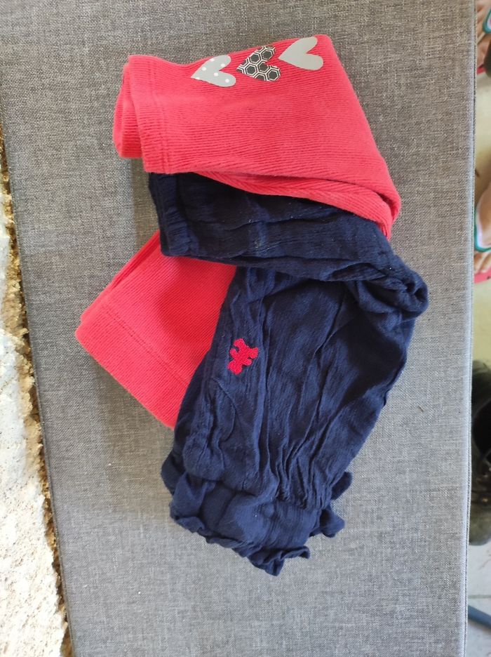 Lot de un leggins rouge et pantalon fluide bleu marine Chipie taille 12 mois possibilité f acheter séparément