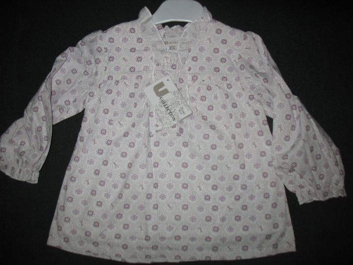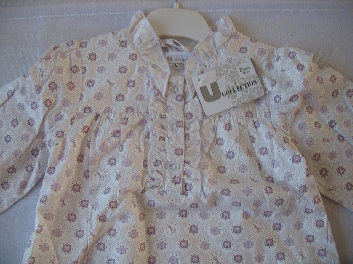 BLOUSE BLANCHE A FLEURS BÉBÉ FILLE "U COLLECTION" - NEUVE - 24 MOIS - n°01