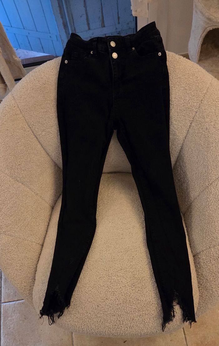 Jean noir skinny Camaïeu – bas effiloché tendance – taille 32/34 – excellent état - photo numéro 2