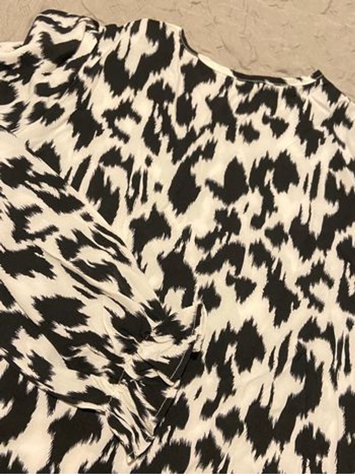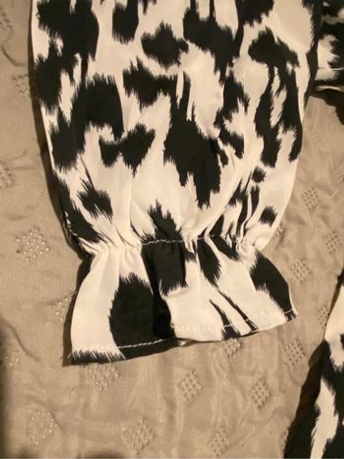 Blouse à col V Matière : 95 % polyester & 5% elastane Fronce sur les épaules Élastique très souple au poignet volant Qualité très souple et douce Neuve jamais porté