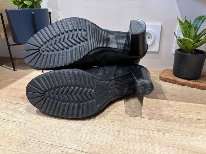 Bottines en cuir. Taille 40. Très confortable. Talon 10cm. Un léger défaut peu visible. Sur photo 2 Peu porté. Vendu avec boîte d'origine