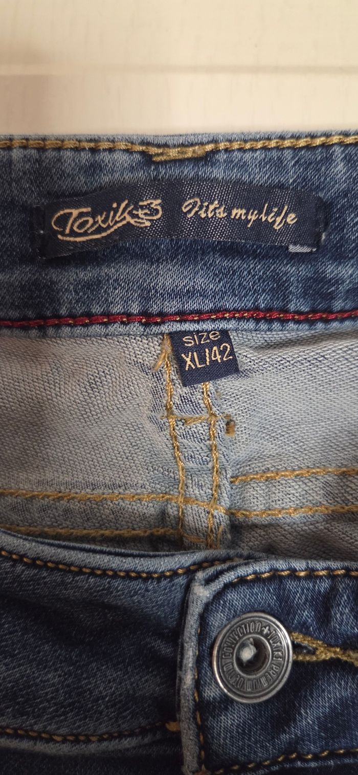 Superbe jean Toxik3 bleu délavé, coupe slim stretch qui épouse parfaitement la silhouette 🤍 Une coupe moderne, taille haute et matière extensible ultra confortable — un vrai indispensable du dressing 👌 💎 Détails : Marque : Toxik3 – Fits My Life Coloris : bleu jean délavé Coupe : slim / skinny stretch Taille : XL / 42 FR Taille haute, matière douce et extensible Fermeture à zip + bouton métal siglé Toxik3 Conviction 5 poches classiques Logo en simili cuir à l’arrière 📏 Mesures à plat : Longueur totale : 92/93 cm Entrejambe : 70 cm Largeur taille : 36 à 44 cm (élastique) ➡️ Convient à une taille 42 standard, matière bien stretch. 🧼 Très bon état, peu porté, tissu et couleur bien conservés. 📦 Envoi rapide et soigné. Un jean confortable, féminin et indémodable, parfait avec des baskets, bottines ou talons selon le style 💙