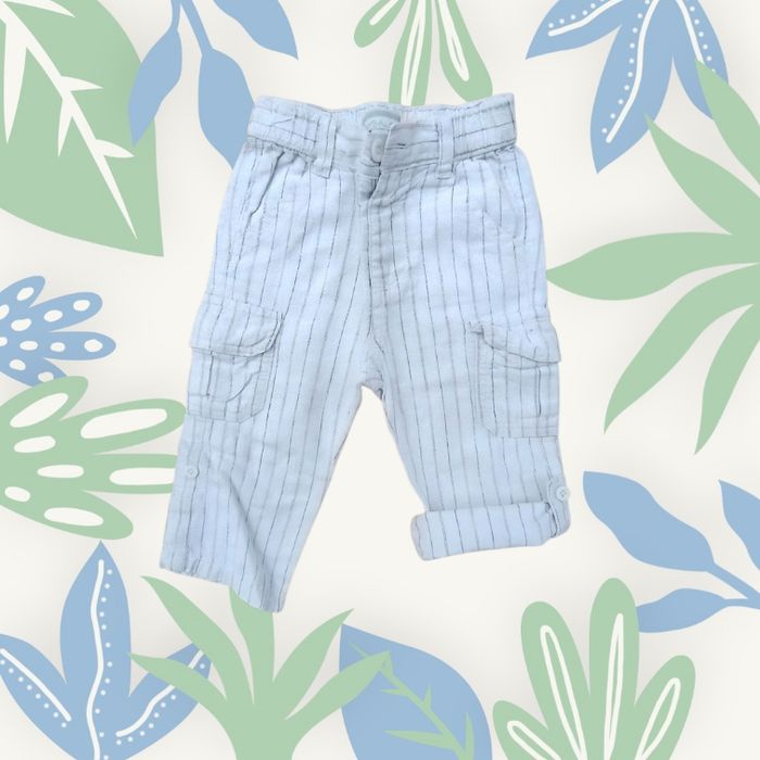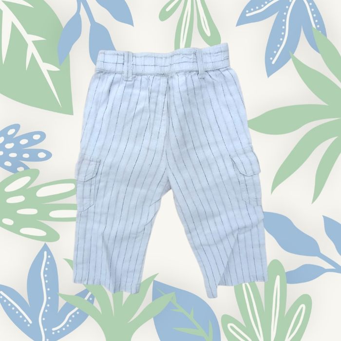 Ne manquez pas ce pantalon cargo adorable pour votre petit bout ! Parfait pour les beaux jours, il allie style décontracté et confort optimal. ✨ Vous allez l'adorer ! * Tissu Léger et Aéré : Idéal pour garder votre bébé au frais, même quand il fait chaud. La matière est douce et agréable sur la peau. * Rayures Tendance : Le motif à fines rayures verticales est moderne et facile à assortir avec tous les petits hauts. * Fonctionnel et Pratique : Il possède de vraies poches cargo pour les petits trésors (ou juste pour le look !). * Détail réglable : Les bas de jambe peuvent être retroussés et fixés par un petit bouton, le transformant en pantacourt : parfait pour s'adapter à la croissance de bébé ou à la température ! * Taille Élastiquée : Pour un habillage facile et un ajustement parfait. * Marque/Taille : Marque kimbaloo, taille 12 lois Il est en très bon état, prêt à partir pour de nouvelles aventures ! Faites plaisir à votre bébé et ajoutez cette pièce incontournable à sa garde-robe estivale ! Tous les prix sont négociables et je fais un prix pour plusieurs vêtements achetés #ajas465vêtementsbébégarçon12mois #ajas46512moistbe #ajas46512moisprintempsété