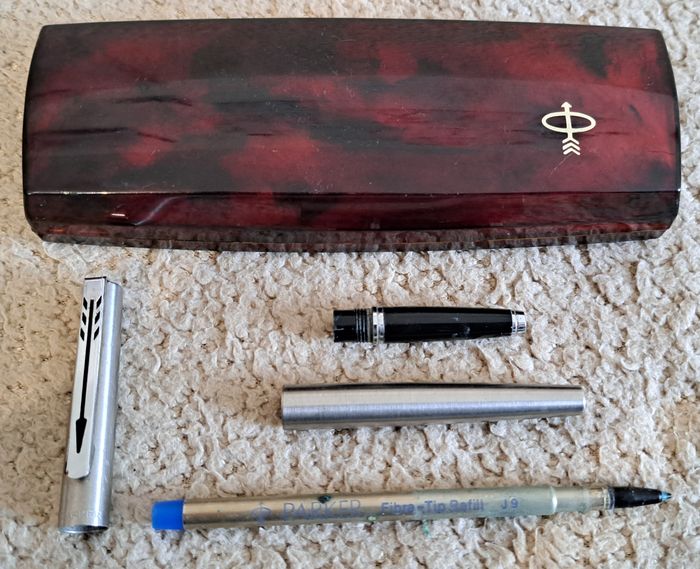 🖋 Stylo à bille rechargeable Parker 45 ou 25 Flighter en acier inox brossé avec son étui, des années 1970's à 1980's
