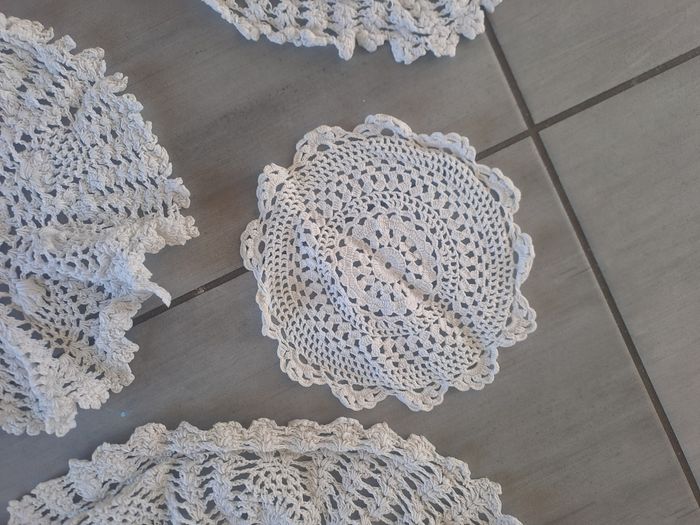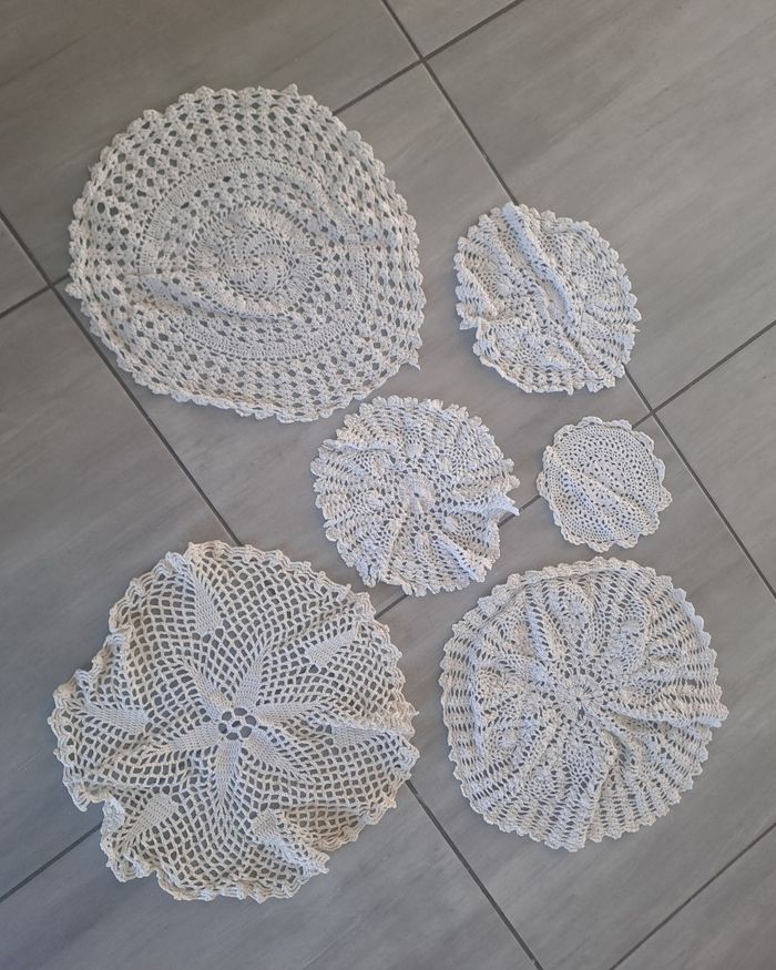 Lot de 6 napperons De différentes tailles et différents motifs Couleur blanc, crème ⚠️ 1 est jauni et 1 à un trou