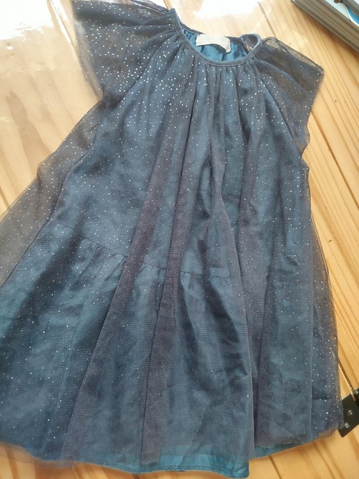 Robe Zara bleu à pois doré taille 6 ans